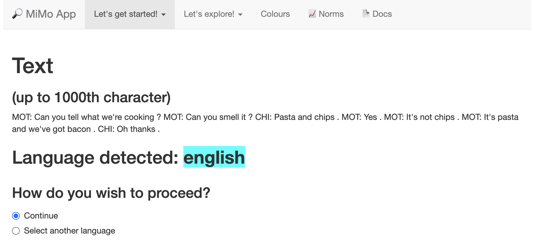 Itโs simple! To run the language analysis app, just go to https://mimolanguageanalysis.uk or click on the โ๏ธ MiMo App tab above. To run the norms app just go to https://mimolanguageanalysis.uk, or click on the ๐ MiMo Norms tab above (norms provided by CHILDES / Talkbank).